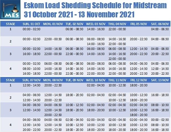 We request the public to. If you are scheduled from 1600 to 1830 but loadshedding is declared at 17h00 you will only be load shed from 17h00 to 18h30. Stage 2 loadshedding to continue until 2200 then resume at 0800 tomorrow. The schedules below are the latest supplied by.